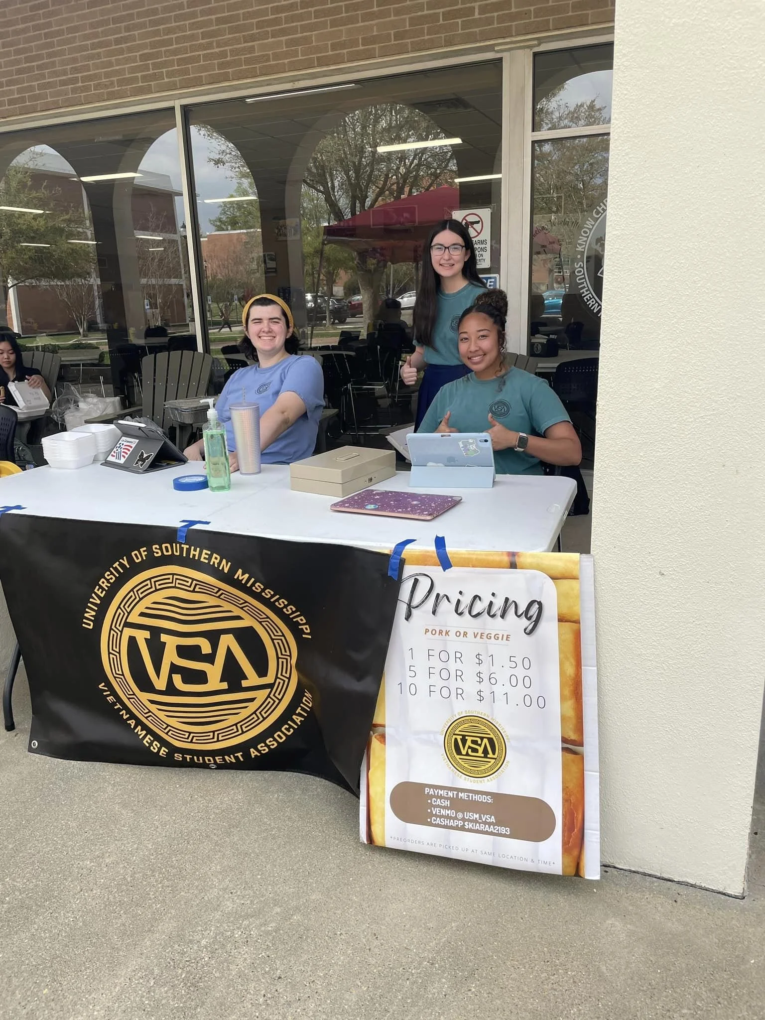 Our twice-yearly Eggroll Festival is an opportunity for us to interact with the Southern Miss Community and promote our organization. The major objectives are to involve the university community, promote VSA, and raise money for our organization and philanthropy. Our festival takes place once in the fall and once in the spring. Our day of sale for the fall took place on October 12, 2022. Our goal was to sell roughly 1.1k eggrolls and we ended up selling 2.3k eggrolls. For our spring event, we hosted Eggroll Fest on March 8th, 2022. We set a goal of selling 1.2k eggrolls and sold a total of 1.3k eggrolls. The accumulated profits of birth festivals came out to be approximately $3000.